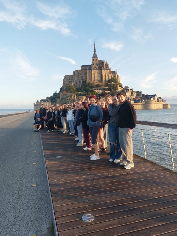 Pondělí 8. září jsme započali dopoledne na ostrově Mont Saint-Michel. Tento ostrov je dominantní svojí architekturou a místem, jež celé obklopuje Normandský záliv. Po prohlídce tamního kláštera jsme následně přejeli do nedalekého přístavního města Saint-Malo. Zde jsme měli možnost projít se po pláži, vykoupat se v moři a navštívit město.